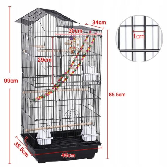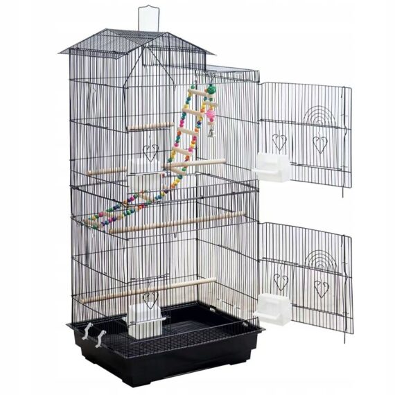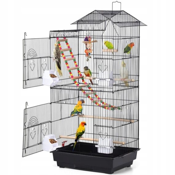 Velká voliérová klec pro papoušky, kanárky a exotické ptáky – černá