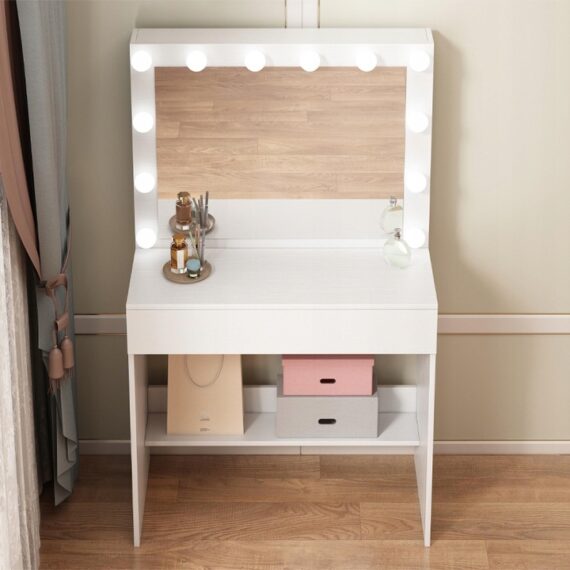 Kosmetický toaletní stolek se zrcadlem LED 80 cm je dokonalou kombinací moderního designu a funkčnosti – praktický nábytek, který se stane stylovým doplňkem vaší ložnice nebo kosmetického salonu.