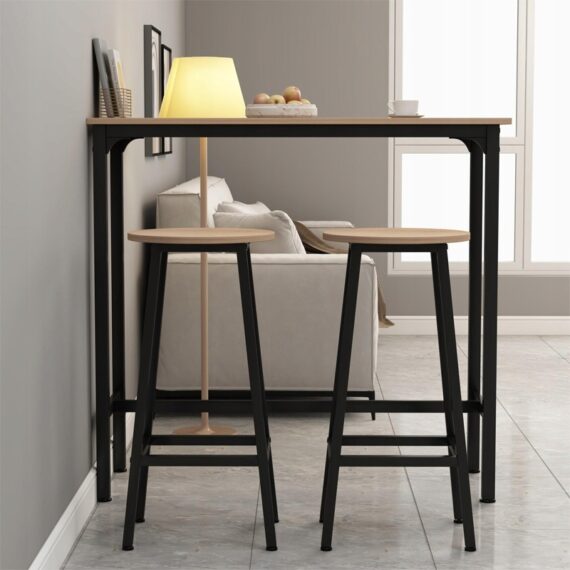Barový set kuchyňský stůl + 2 židle barové světle hnědé – moderní industriální loftový styl