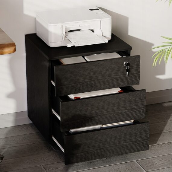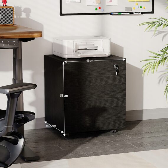 Kancelářský kontejner na kolečkách se zásuvkami na klíč, mobilní skříňka, černá