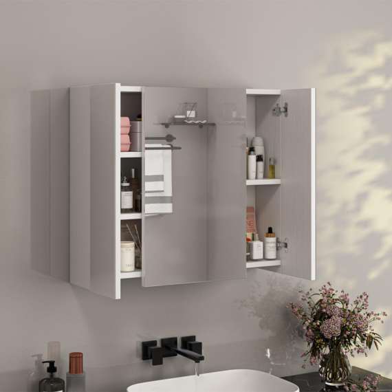 Koupelnová nástěnná skříňka s trojcestným zrcadlem