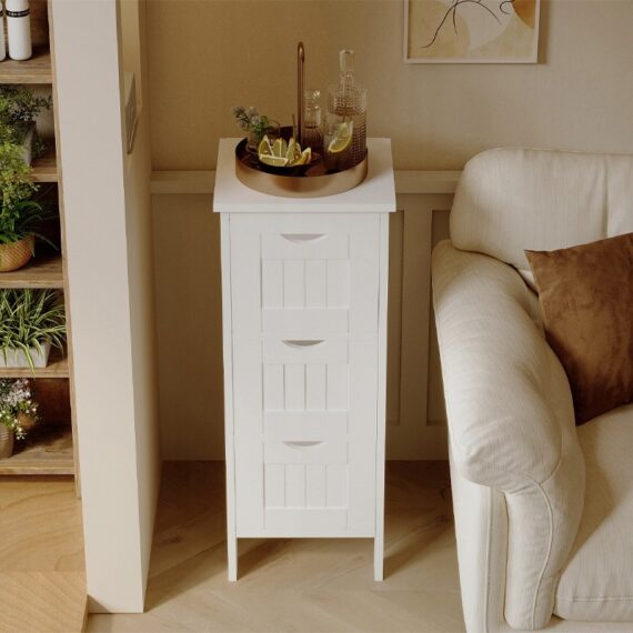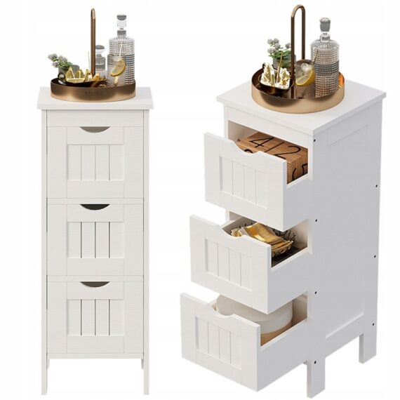 Koupelnová skříňka úzká komoda se zásuvkami bílá koupelnová skříňka na ručníky loft