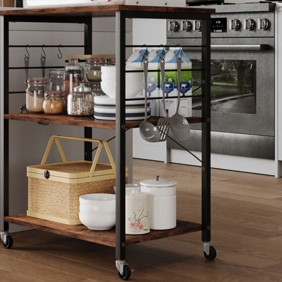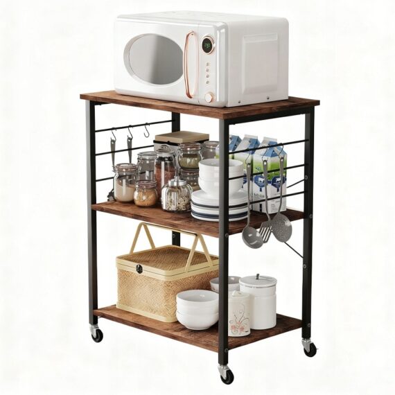 Mobilna szafka na kółkach, brązowa – stolik śniadaniowy / wózek kuchenny 60 cm.