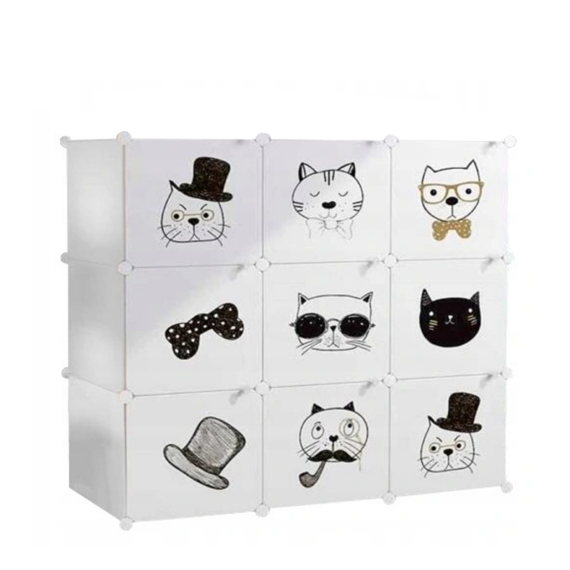 Modulární šatní skříň pro děti bílá s pohádkovým motivem 9 polic
