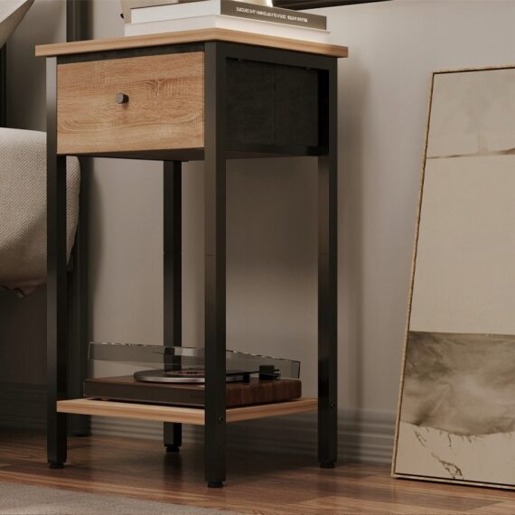 Noční stolek komoda skříňka se zásuvkou a policí světle hnědá industriální loft 51 cm