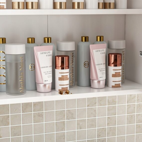 ideální pro uložení kosmetiky, ručníků a koupelnových doplňků