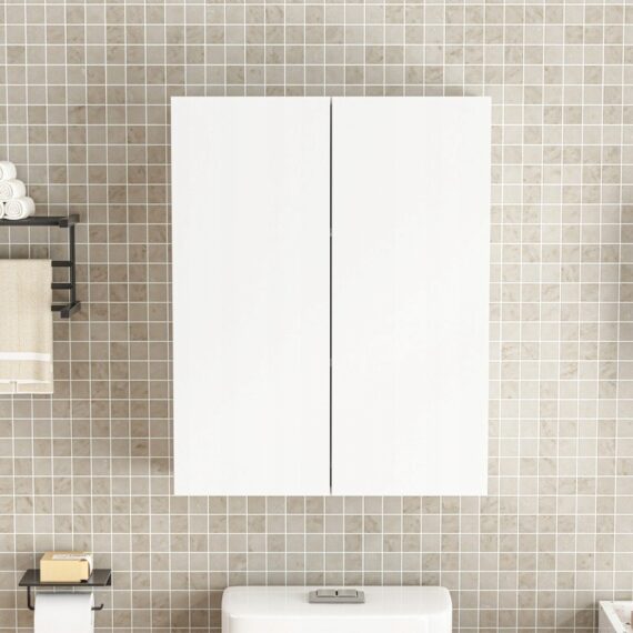 Bílá nástěnná koupelnová skříňka, 2 dvířka, moderní, 3 police, 60 cm