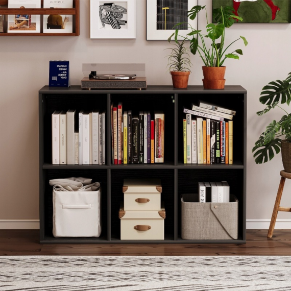 Moderní a prostorný regál v loftovém stylu, ideální do kanceláře, obývacího pokoje nebo pokoje pro mládež. Konstrukce 3×2 zajišťuje funkční úložný prostor a snadný přístup k obsahu, zatímco černá barva podtrhuje industriální charakter interiéru.