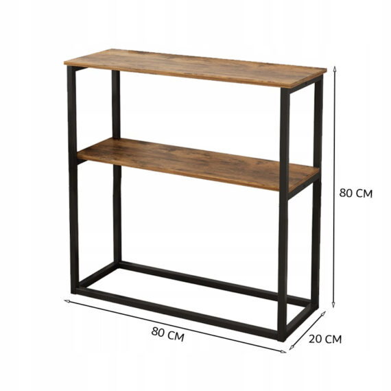 Průmyslová podkrovní kancelářská knihovna dřevěná 2 police konzola rustikální hnědá
