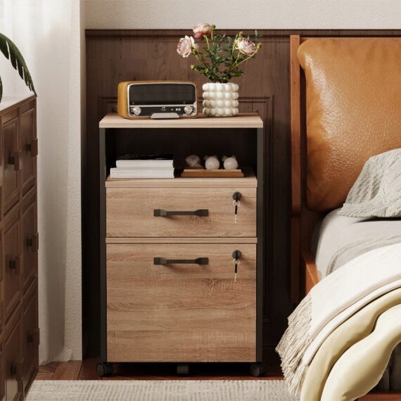 Skříňka na kolečkách / kontejner na dokumenty – světle hnědá, uzamykatelná