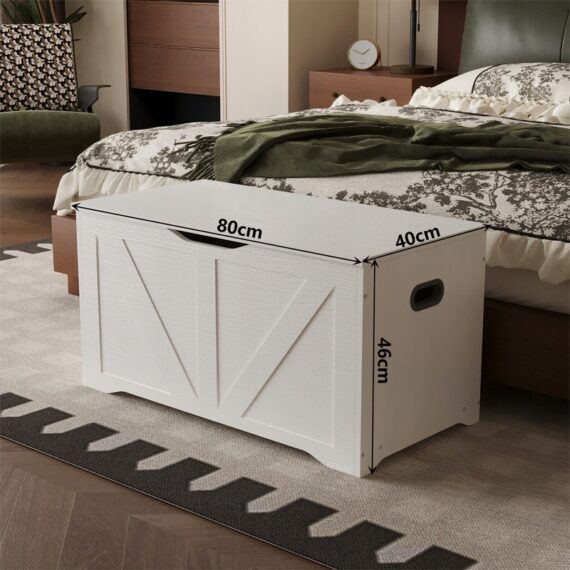 Velká dřevěná úložná truhla, bílá, loftová krabice na ložní prádlo, 80 cm