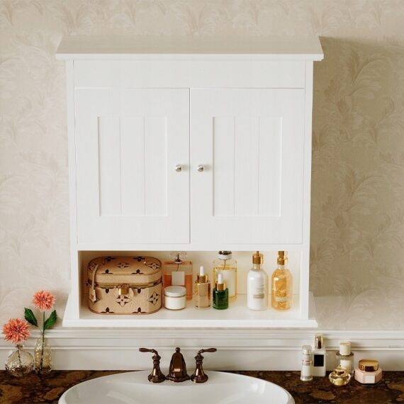 Závěsná koupelnová skříňka bílá 2dveřová skandinávská nástěnná police loft