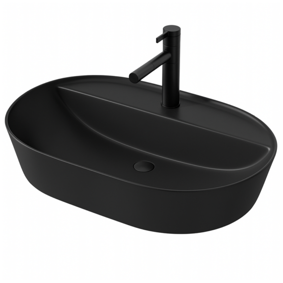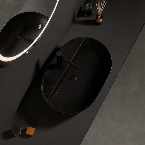 Umyvadlo na desce oválné 60 cm – keramické, černá, s otvíráním